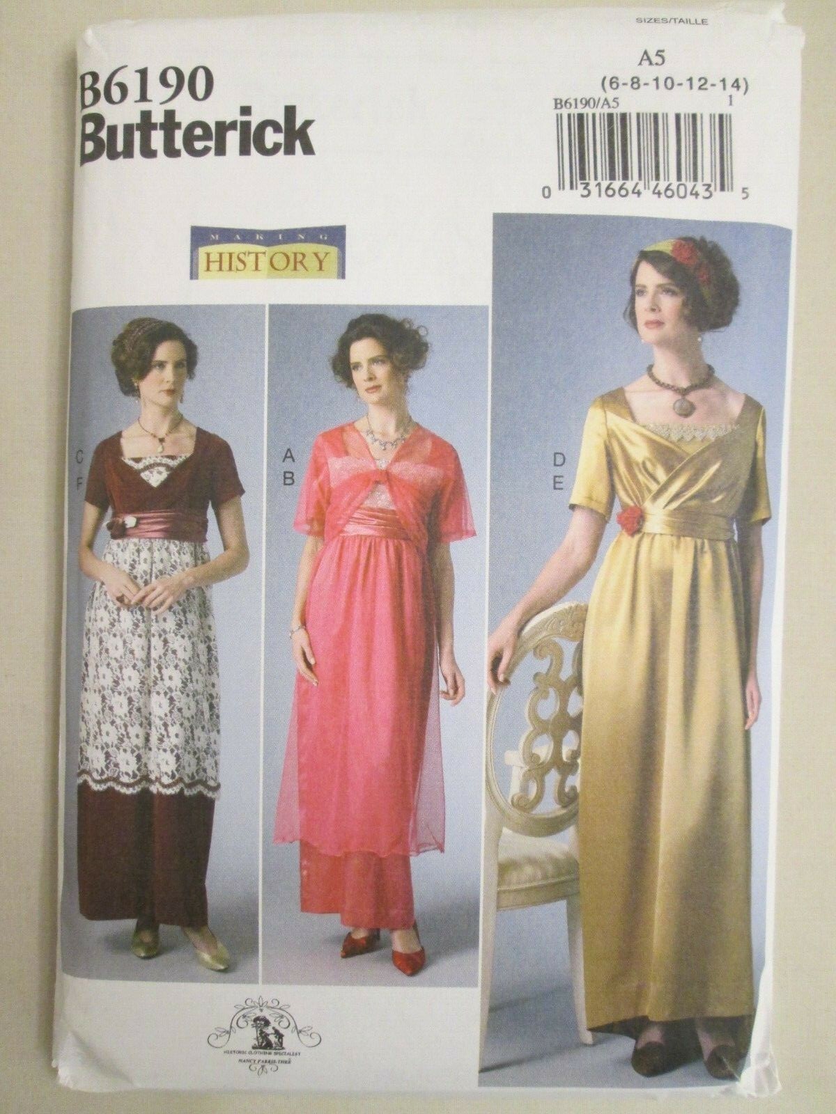 Butterick Pattern 6190 Edwardian Era Downton Abbey Dress Uncut Sizes 6 14 For Sale Online Ebay